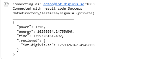 - Du kan arbeta direkt med fulla adresser som: mqtt://iot.digivis.se/datadirectory/TestArea/signalA eller