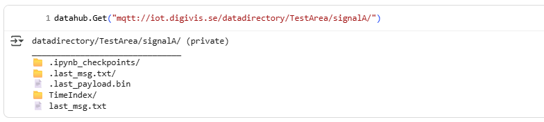datahub.Get("mqtt://iot.digivis.se/datadirectory/TestArea/signalA")