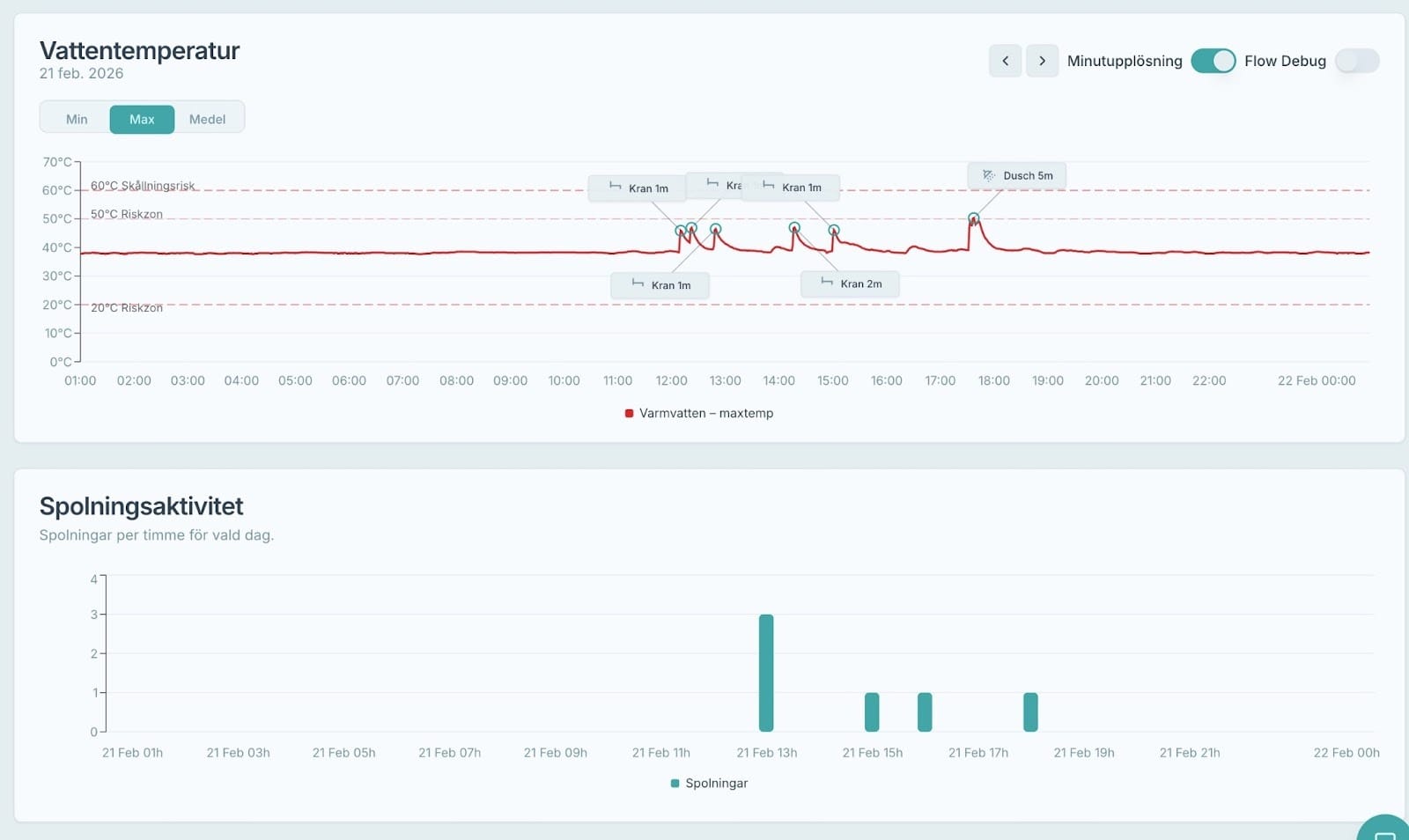 Bild 2: Dashboard för vattenaktivitet och temperaturövervakning
