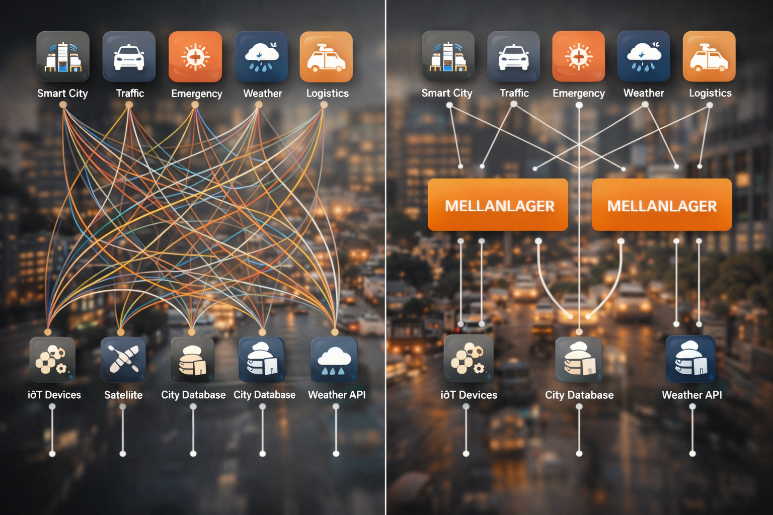 För att möjliggöra ett helhetsperspektiv behöver de applikationer som stödjer beslutsfattande i en stad kunna integrera ett stort antal datamängder från många olika system. Om detta görs genom punkt-till-punkt-integrationer blir lösningen snabbt komplex, kostsam och svår att förvalta över tid. Det finns därför ett behov av ett mellanlager som abstraherar bort systemgränser och förenklar åtkomst till data. Inom EU pratas det om tex om dataspaces där vi kan integrera system genom att exponera dem till en gemensam data rymd med så kallade data connectors och federerade inloggningssystem. Vi måste dock gå ännu längre än så för att kunna bygga digitala tvillingar. För att fullt koppla ihop olika utredningar från olika system så måste de enskilda objekten och egenskaperna i våra dataset vara fullt adresserbara. Först då har vi en fullständig integration mellan system.