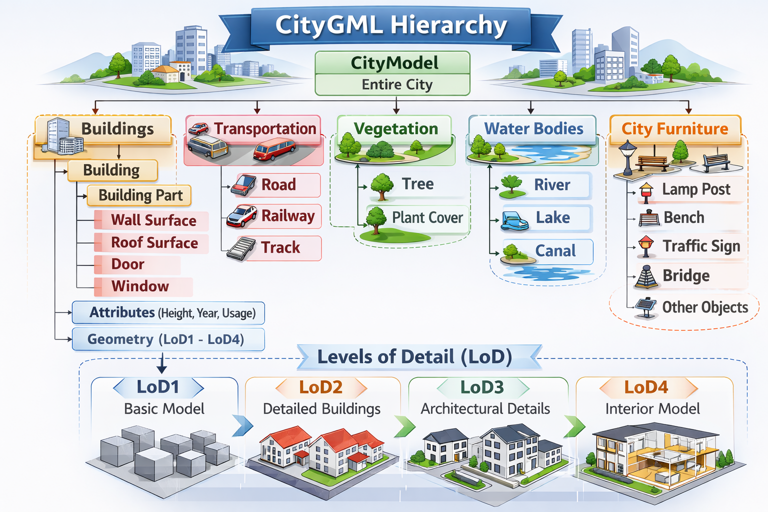 - geometry är också ett 3D objekt men används när objektet inte redan finns i 3D kartan. Tex om det är en framtida hus.