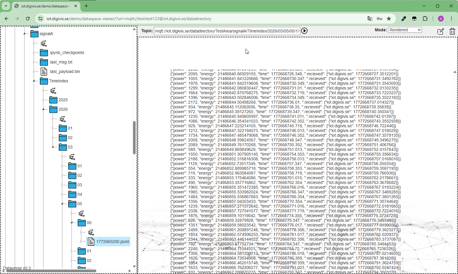 Exempel: Om ett värde publiceras kl. 12:05 den 1 april 2024 lagras det iTimeIndex/2024/04/01/12/1711972800.jsonl