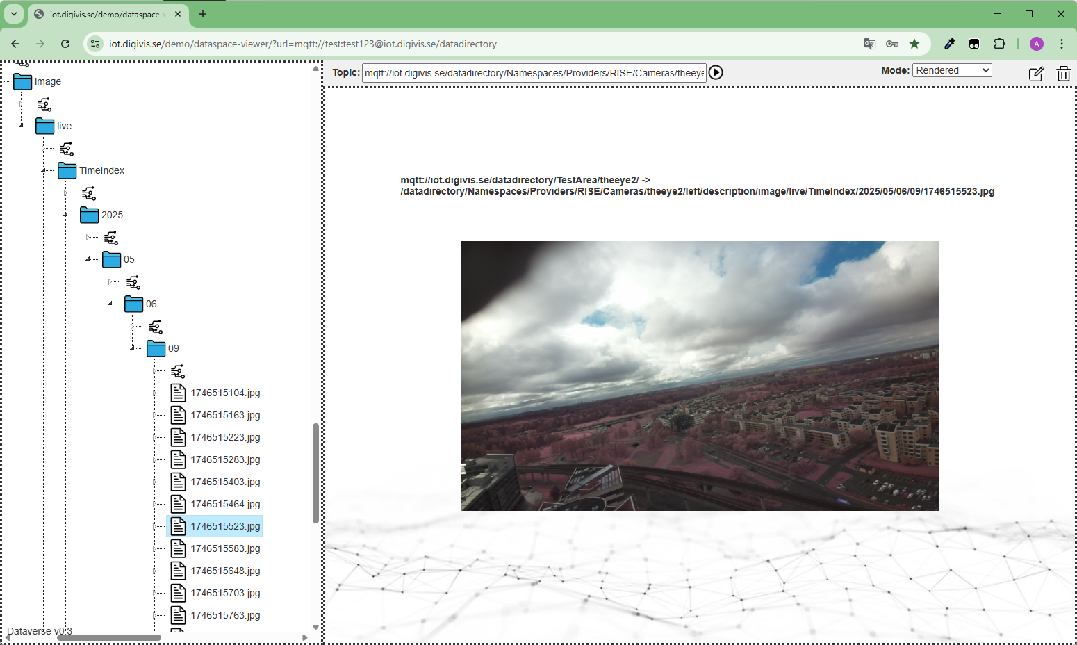 Chattmeddelandena hamnar då på adressen: mqtt://iot.digivis.se/datadirectory/Groups/Digital Vision Kista/channels/iot.digivis.se/datadirectory/Namespaces/Providers/trafiken.nu/TA-planer/Kistavägen_ID_301385