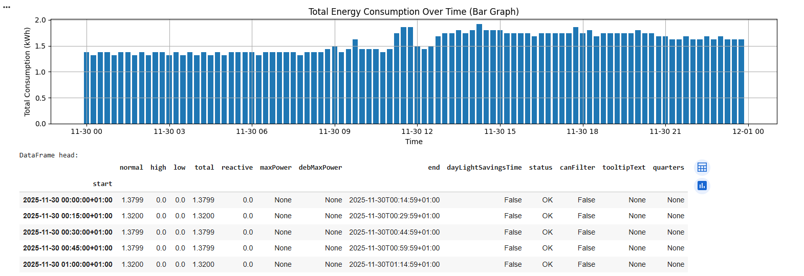 Detta fungerar naturligtvis bara så länge vi använder de cookies som definierar sessionen som vi är inloggad på men kan ofta flyttas över till en python instans på en annan dator till och med som kan automatisera processen med att läse ner mera data och från flera olika elmätare.