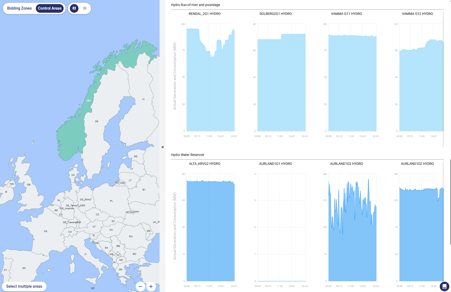 Både aktörer så som Svenska Kraftnät och norska Statnett har data som kontinuerligt publiseras på deras hemsidor utan något krav på inloggning. Det finns även sidan: https://transparency.entsoe.eu/. Där vi kan få data för hela Europa. Automatiskt nertagning av data är möjlig men kräver att man begär en API nyckel.