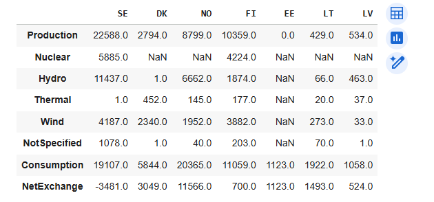 Här är ett exempel där vi läser in energimixen från Statnetts tabell.